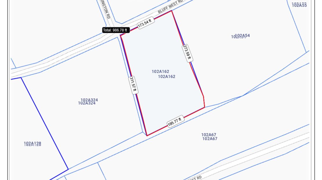 - About 195 feet of bluff edge and approximately 270-310 feet deep
