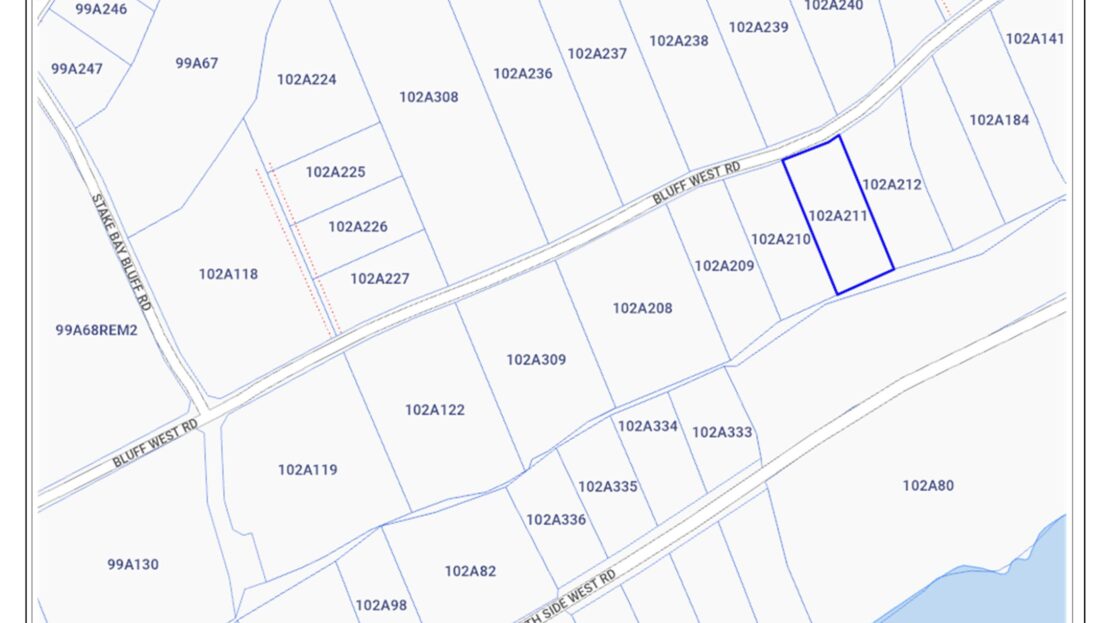 - Located on Bluff West Road, a little east of Stake Bay Bluff Road.