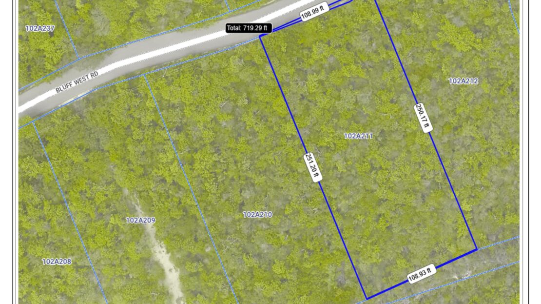 - A spacious 0.62 acre lot with approximately 108 feet on the Bluff edge and 250 ft in depth.